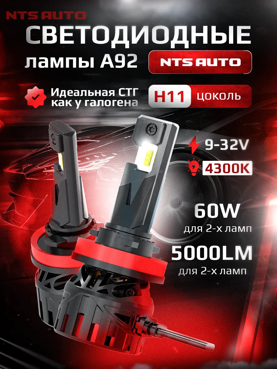 Светодиодные лампы A92 4300K H8/H9/H11