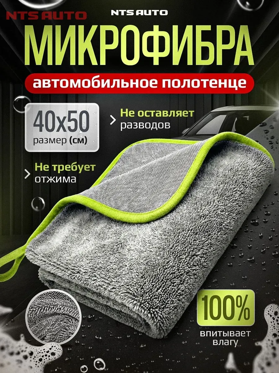 Полотенце из микрофибры для авто 40Х50см ЗЕЛЕНО-СЕРОЕ